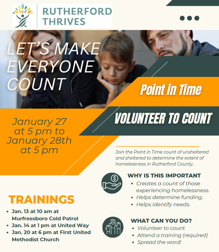 Rutherford Thrives (TN-510) Continuum of Care, employs a range of services and housing options designed to assist individuals and families experiencing homelessness at different stages of their journey toward stable housing and self-sufficiency. Collaboration among government agencies, nonprofit organizations, service providers, and other community stakeholders is essential to the success of a CoC efforts.